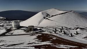 A University of Hawaii web camera showed snow on the ground along the guardrails of one of the Mauna Kea astronomy observatories on Friday morning.