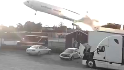 ????#BREAKING: Watch as Heartbreaking new CCTV footage captures the horrifying moment as a UPS cargo Flight 2976 plummets from the sky, crashing in a massive fireball in Louisville, Kentucky tonight. The cargo jet erupted into flames upon impact, lighting up the night sky as debris… pic.twitter.com/X10vHPcJyO