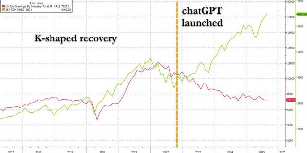 Even the FT just had to admit global trade is also now a 'K'. Its op-ed , 'China is making trade impossible', argues, "There is nothing that China wants to import, nothing it does not believe it can make better and cheaper, nothing for which it wants to rely on foreigners a single day longer than it has to." It adds what China imports, because it must, it also intends to make soon and dominate global supply of. In short, Ricardian comparative advantage is gone; China makes 'port' and 'cloth', and China will eventually dominate all key global industries. Those who read Ricardo, Chinese history, Marxism-Leninism, and neomercantilism warned about this years ago, and how it would lead to the collapse of the (neo)liberal world order - as a US commission warns China seeks an "alternative world order." Yet 'because markets' types were all 'O'-shaped: mouths agape, intellectually in a closed loop. So, here we are.