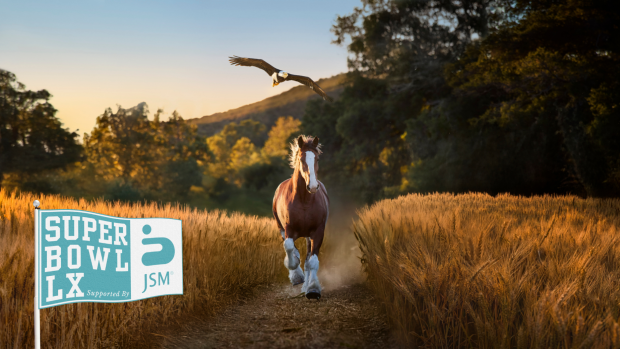 Unable to fly, the chick gets caught in the rain trying to follow the colt back to the barn and is thankfully spotted and rescued by its new friend. Lynyrd Skynyrd's "Free Bird" plays over a montage of the pair growing up on the farm, culminating in a glorious shot of the fully-grown Clydesdale jumping over the fallen tree flanked by his friend, now a majestic, soaring bald eagle. A misty-eyed farmhand witnessing the moment claims that it's just the sun in his eyes as Budweiser says "For 150 years, this Bud's for you."