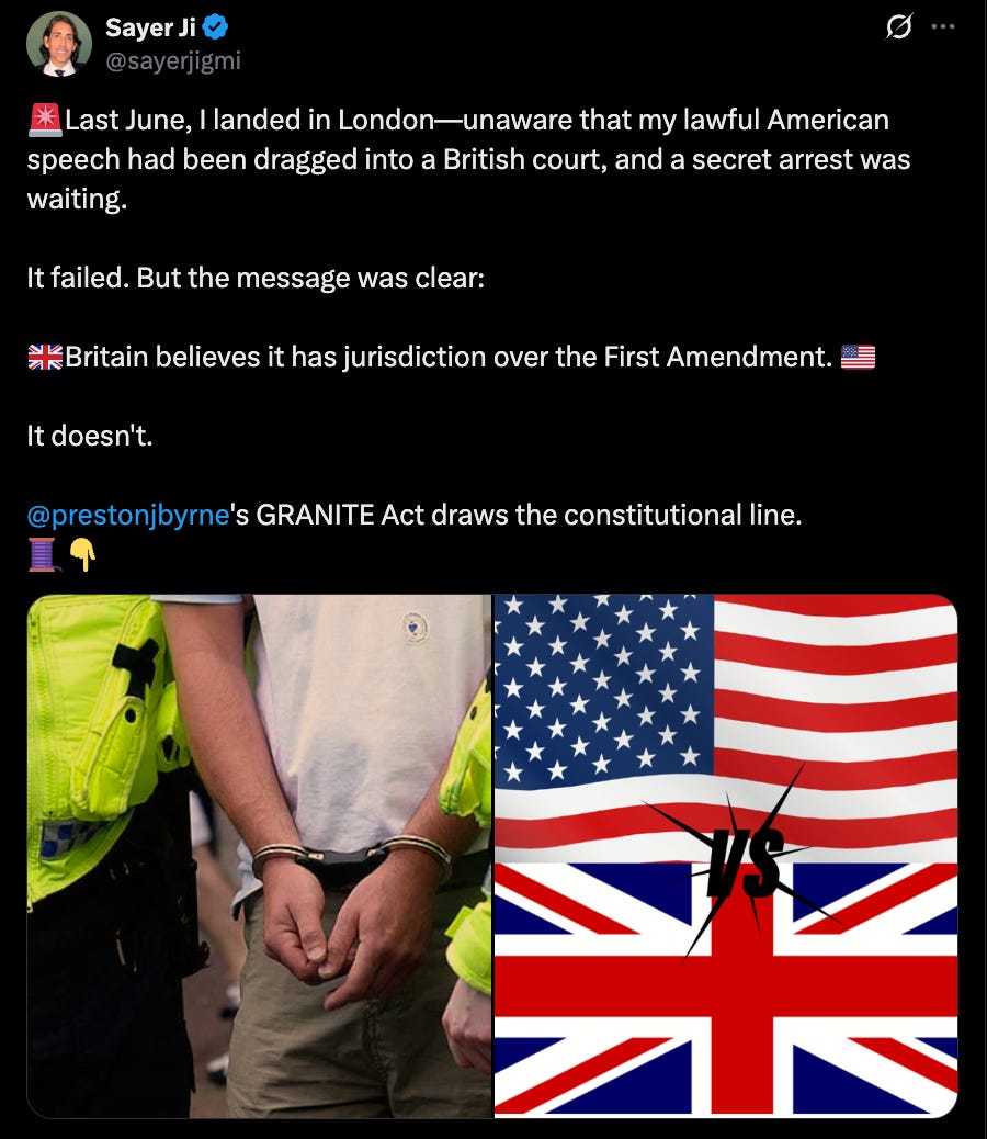 The constitutional limits of foreign authority over American speech stopped being theoretical for me when my lawful U.S.-based expression appeared in a foreign court with no jurisdiction—and when Preston Byrne began designing the legal architecture to ensure it could not happen again, as the State Department, members of Congress such as Rep. Anna Paulina Luna, and Cabinet officials publicly signaled resistance.