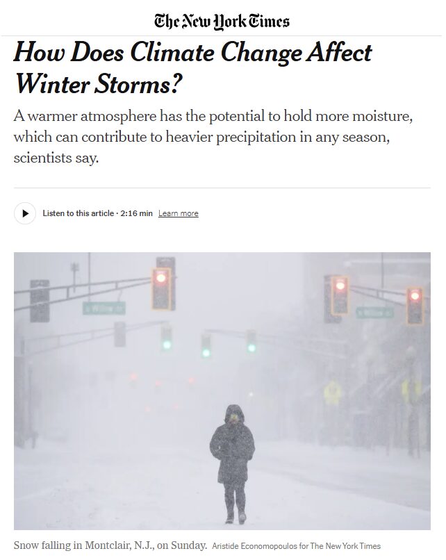 NYT: "A warmer atmosphere has the potential to hold more moisture, which can contribute to heavier precipitation in any season, scientists say."