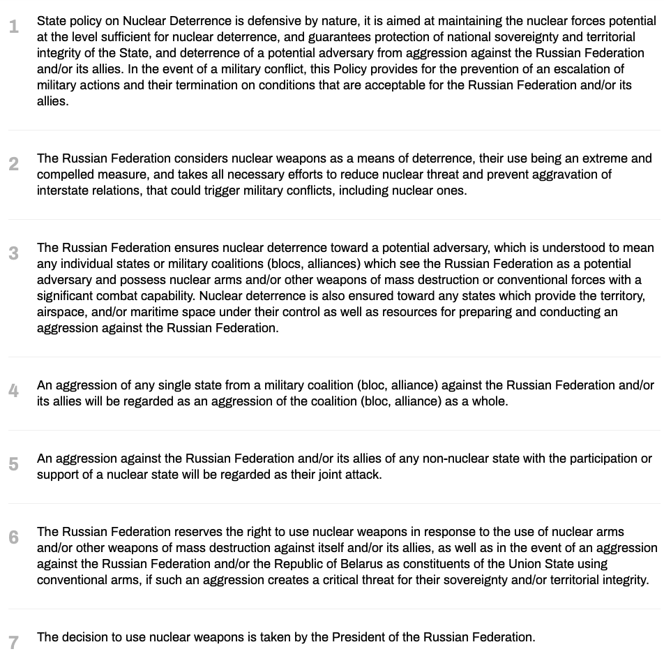Kelin's phrasing "We have every right to consider London as a de facto party to the conflict" is ominous when Moscow's nuclear doctrine is taken into account. The doctrine specifically states:
