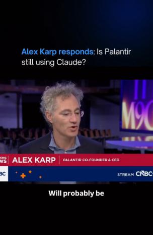 @cnbc #Palantir is still using Anthropic's #Claude as the artificial intelligence startup's clash with the Pentagon plays out, CEO #AlexKarp told #CNBC ? original sound - cnbc
