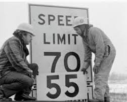 Some reading this are perhaps too young to remember, but there actually was such a thing. More finely, such a thing was imposed on us by the government in the name of "saving gas" – although it quickly got re-branded as a "safety" edict. The NMSL was less formally known as Drive 55, which became the law in 1974 and stayed that way for about the next 20 years. It was ginned up by the federal government in response to surging oil prices, caused by shortages that were caused by the oil-exporting states reducing the supply of oil to punish the United States for – wait for it – backing the national socialist state that effectively controls the United States.