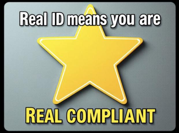 Of course, the ID they've been requiring us to get for decades to be allowed to buy cough syrup or cash a check (and incidentally to be allowed to drive on the government's roads) is already pretty real – in the ghetto-English usage. The photo they took of you is probably a face scan that can be (and will) be used by facial recognition systems and there is a bar code (and probably an RFID transmitter locater device of some kind built into it, too.