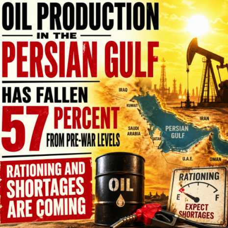 According to Goldman Sachs, oil production in the Persian Gulf has declined by a whopping 57 percent from pre-war levels…