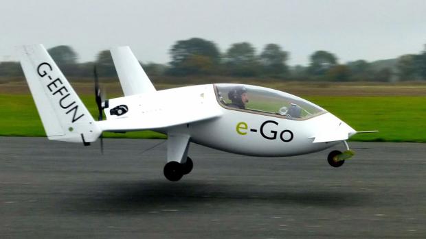 Born out of a competition run by the Light Aircraft Association in 2007, e-Go is built with low-cost flying in mind. Power comes from a 30-hp (22-kW) Wankel rotary engine, which is an adaptation of a Rotron engine designed for work in UAVs. In total, the power plant, which runs on on garage forecourt fuel, weighs 23 kg (51 lb) and boasts a fuel efficiency of 65 mpg (3.6 L/100 km) at a speed of 90 knots (104 mph/167 km/h).