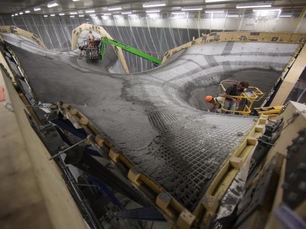 Instead of using custom-built, single-use wooden or foam scaffolding, the engineers tested a new technique of their own design. A net of steel cables was stretched into the desired shape, and a polymer textile was laid over the top to create a flexible formwork. The shape was controlled by algorithms that distribute the force evenly between the cables and determined just how much concrete needed to be applied to each section. Afterwards, the cable net can be dismantled, reused and reshaped as needed.