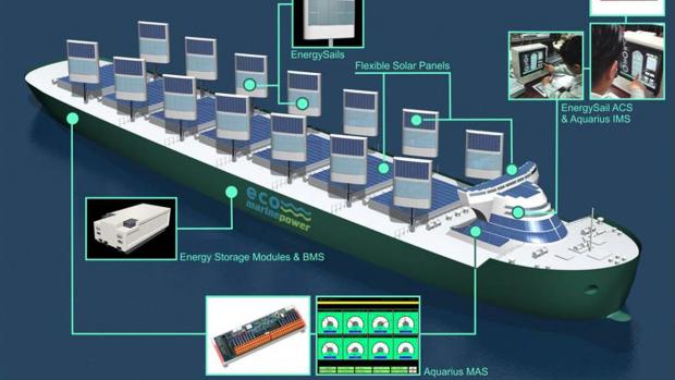 Unlike some other proposals for reviving the use of sails in commercial shipping, the EnergySail from Eco Marine Power (EMP) can harness the power of the wind and sun at the same time, for high-efficiency transport on the high seas.