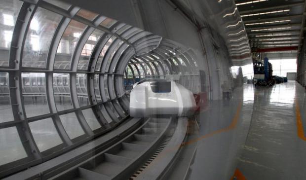 China has slashed air pressure in a test track tube to as low as 2.9 centibars, or 2.9 kilopascal units of pressure, in experiments on the 6-meter-diameter test run at a maximum speed of 50 kilometers per hour. Standard atmosphere pressure is 101.325 kilopascals. The pressure is 33 times lower than normal air pressure.