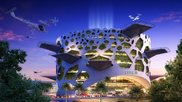 Uber first floated the idea of taking its transportation services skyward in a 2016 white paper. The Uber Elevate service would use vertical takeoff and landing aircraft to ferry people around busy urban centers. With a range of up to 60 mi (96 km), the aircraft would move between Skyports stationed around cities, getting passengers where they need to go and swapping batteries or charging up at the same time.