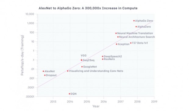 The largest AI projects now use computing resources that cost in the single-digit millions. The world has a total computer hardware budget of $1 trillion per year. AI are about halfway in time from taking over a majority of the world's hardware. Another 300,000 times increase in resources needed would put AI at needing more of the world's computing resources. This would take AI projects from single digit millions to hundreds of billions. If dedicated artificial intelligence clouds became about 30% of the overall world hardware then this AI projects would need those resources around 2025. AI would need another 3 months to needing over 50% of the world's hardware.