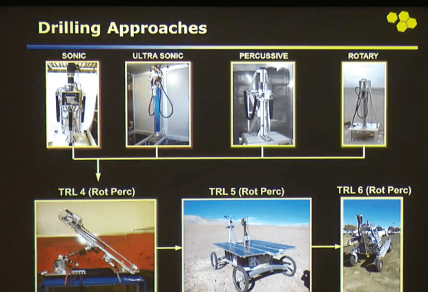 There is technology development required to reach TRL 6, as well as the range of tests the system was subjected to. These tests include drilling in volatile-rich lunar analog soil and sample delivery inside a lunar chamber.