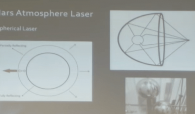 The Mars atmosphere is the perfect pressure for a CO2 laser. You could make a CO2 laser that is open to the Mars atmosphere.