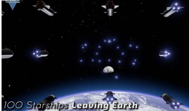 Spacexvision.com had an animation of a fleet of 100 SpaceX Starships leaving the Earth.