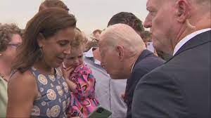 A video of the incident, which took place as the president greeted embassy staff members and their families before he boarded Air Force One at Helsinki-Vantaan International Airport, shows Biden leaning into a young girl and placing his mouth on her shoulder as he nibbled lightly.