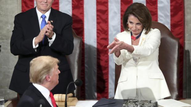 As Pelosi yammered on, B-roll of Trump walking on the South Lawn of the White House appeared on the screen.