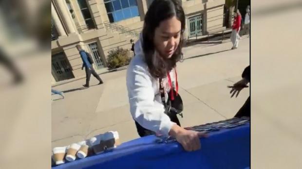 WATCH: While @tpusastudents were tabling on the University of Iowa campus, a student flipped their table and walked away.