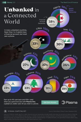 Created in partnership with Plasma, this graphic, via Visual Capitalist's Jenna Ross, shows how ownership of financial accounts and mobile phones compares across countries. It's part of our Money 2.0 series, where we highlight how finance is evolving into its next era.