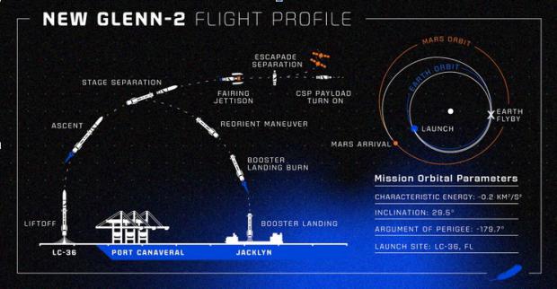 The new launch window for Blue Origin's New Glenn NG-2 mission (carrying NASA's ESCAPADE Mars probes) opens at 2:50 p.m. ET (19:50 UTC) on Wednesday, November 12, 2025. The mission will launch the NASA ESCAPADE spacecraft for Mars from Cape Canaveral Space Force Station in Florida.