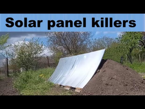 Now I will show you 1 of these 4 mirrors, and you can see that this surface is concrete. The 2nd surface is a mirror, and you understand that my goal was to find the cheapest mirror to produce the cheapest solar energy which will win the competition with thermal and nuclear power plants. This my old video showed in detail how I made my concrete mirrors, and how I glued reflective films onto their surfaces.