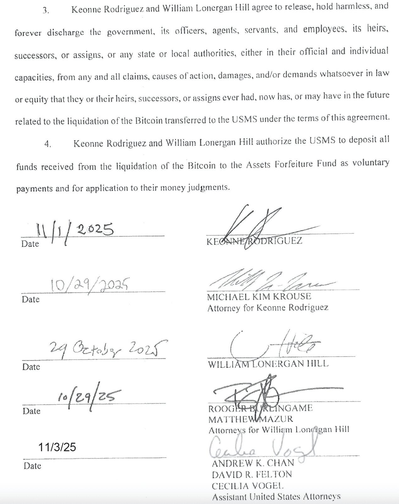 According to a document titled "Asset Liquidation Agreement", which has been obtained exclusively by Bitcoin Magazine and has not until now been made public, the bitcoin that Rodriguez and Hill forfeited is to be sold — or already has been.